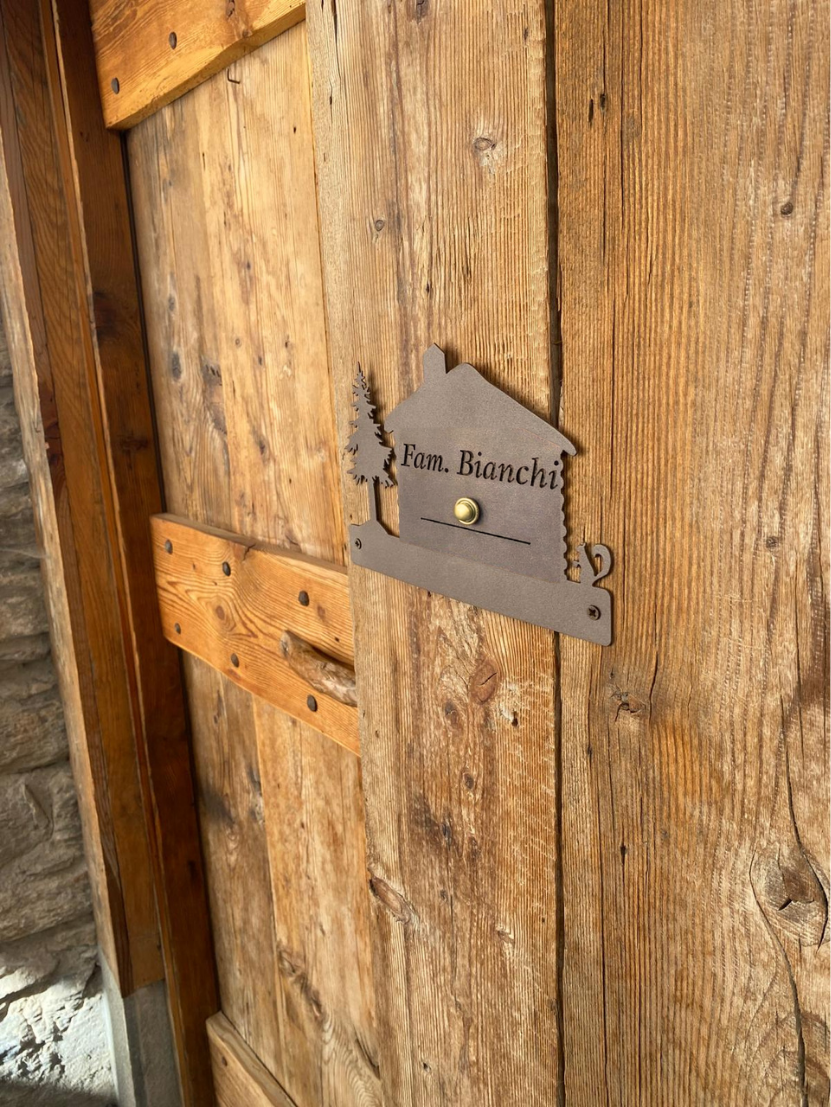 È un dettaglio d’ingresso pensato per sostituire la classica scatoletta di plastica e trasformarla in qualcosa che racconta casa, montagna e artigianato.