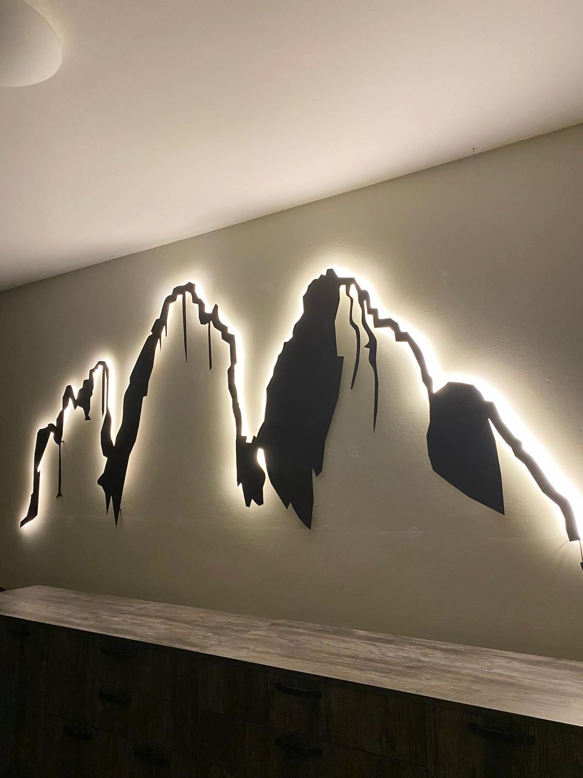 Il Profilo delle Tre Cime di Lavaredo in "3D". Quest'idea nasce dal desiderio di un nostro cliente di creare un profilo montagna da un suo schizzo a mano, bellissima richiesta che subito ci ha affascinato e abbiamo voluto riprodurre su ferro.