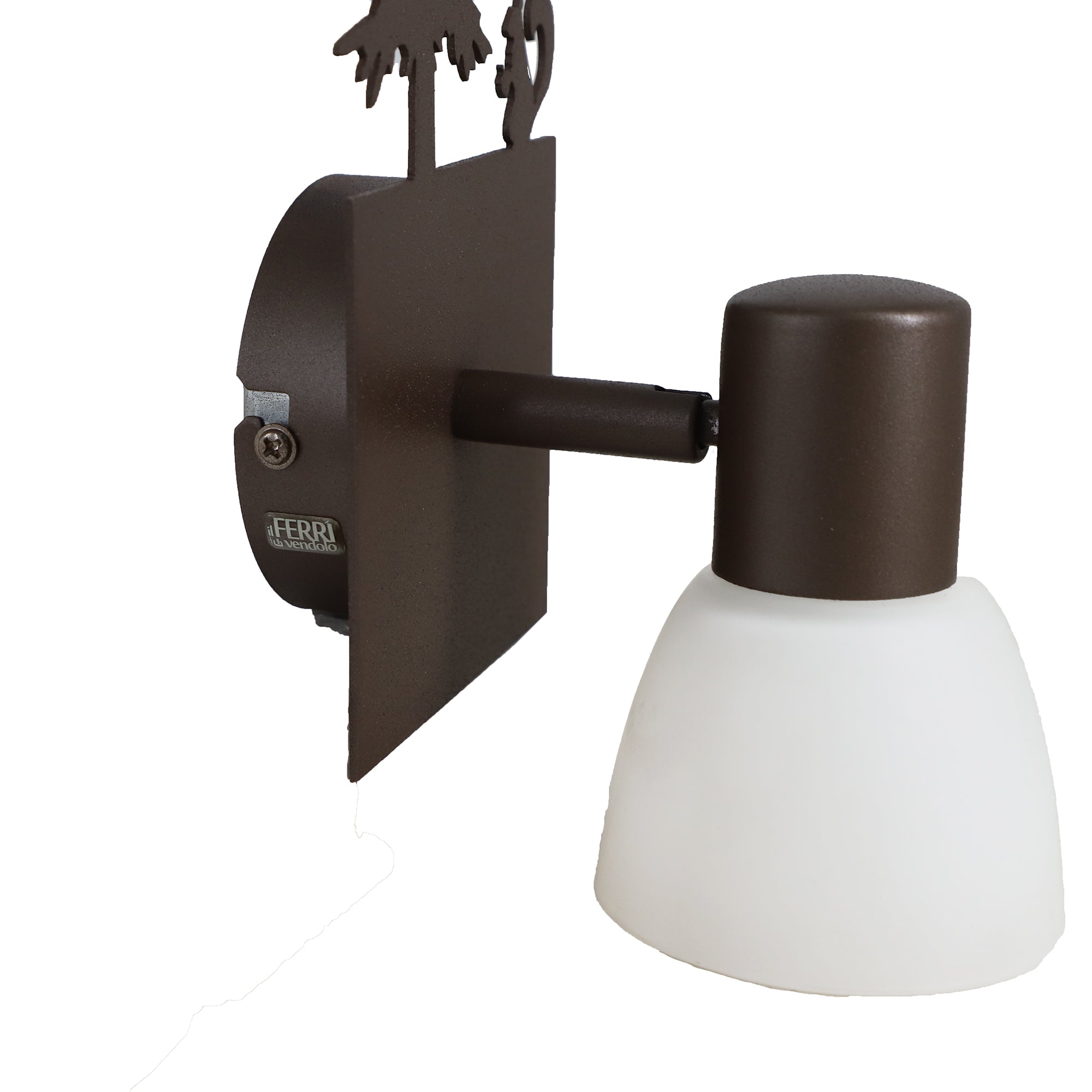 Una bella soluzione come luce da comodino direzionabile a 360°. Farettino con cappellino in vetro satinato.