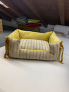 Cuccia per cani rettangolare "Velluto e treccia senape"