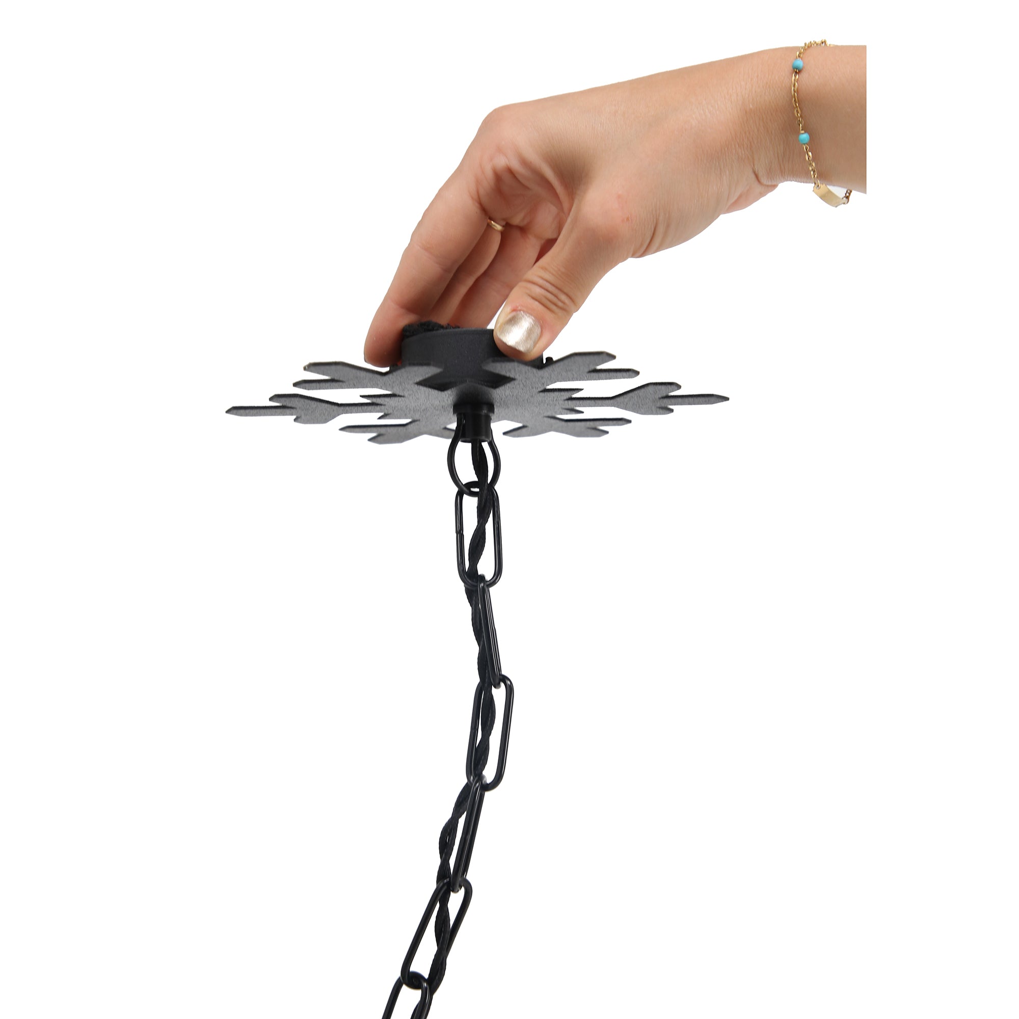 Questa catena con fiocco di neve serve per spostare il vostro punto luce e farlo "cadere" dove più desiderate: in centro alla sala, sopra un tavolo da pranzo, vicino al camino...